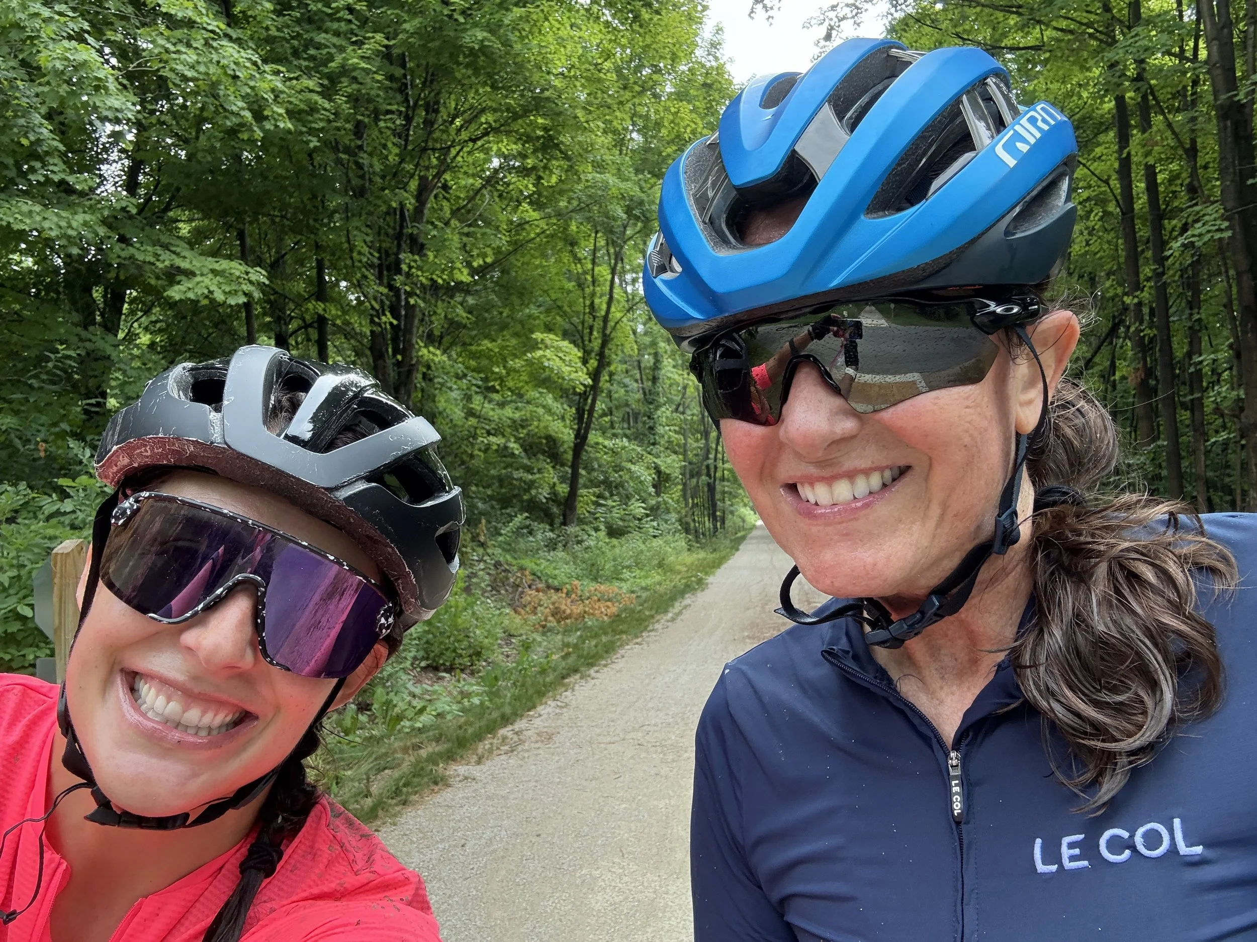 And then there’s Therese — proof that sometimes the best rides are the unexpected ones. We met on the Kal-Haven Trail on a day when it was absolutely pouring rain. We ended up riding together for miles, swapping stories and laughs despite the weather. It was the kind of spontaneous connection that reminds me how special the biking community really is — and how wonderful it is to meet a fellow “crazy” cyclist willing to embrace the elements.