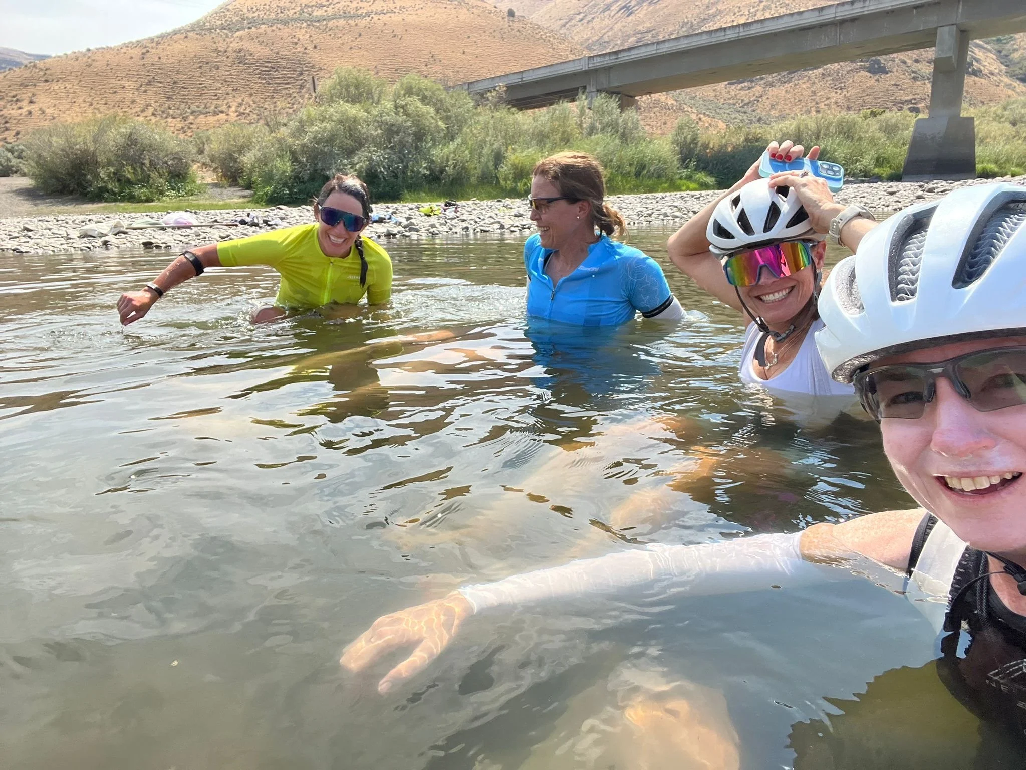 The last 30 miles packed in over half of today’s total climbing, just when we were already hot and tired. A few of us ladies took a quick dip in a stream before tackling the longest climb of the day — 8.64 miles — which was as tough as it sounds, but also strangely satisfying to conquer.